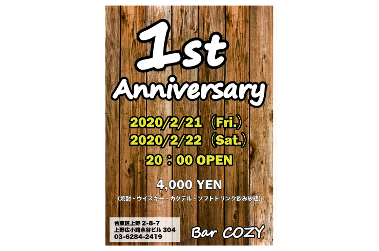 上野のゲイバー・BAR COZYでは飲み放題も楽しめます